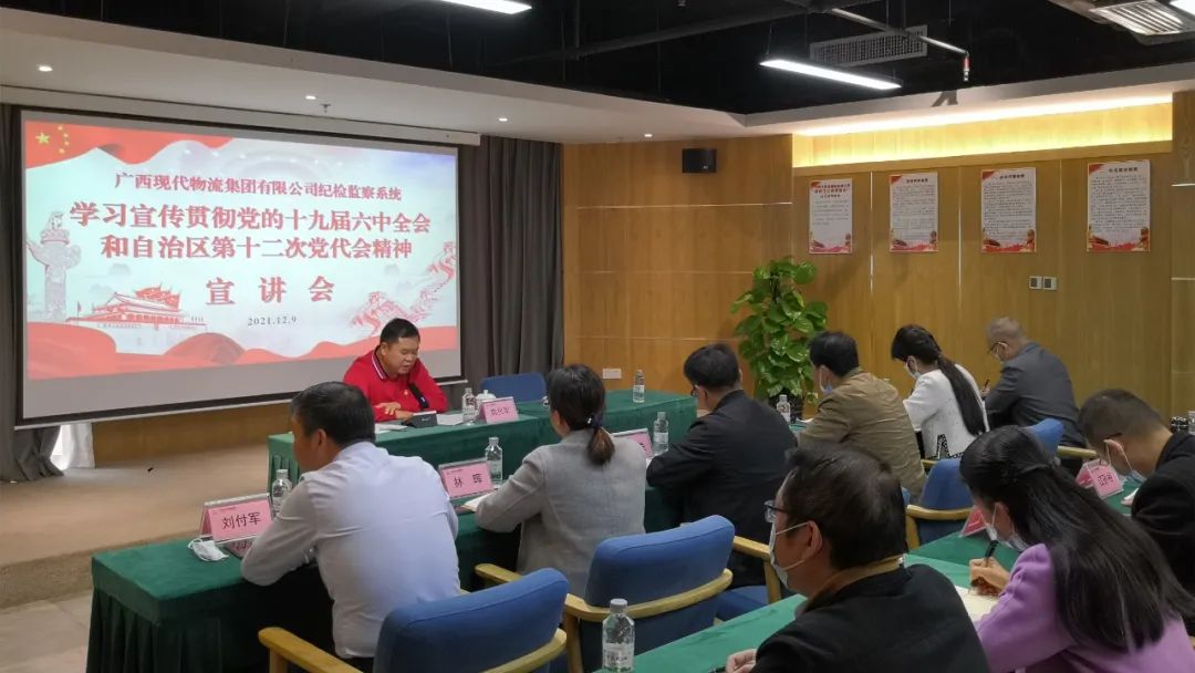 12月9日,集团公司党委委员、纪委书记陈代军就学习宣传贯彻党的十九届六中全会精神和自治区第十二次党代会精神向集团公司全体纪检监察干部进行了宣讲。