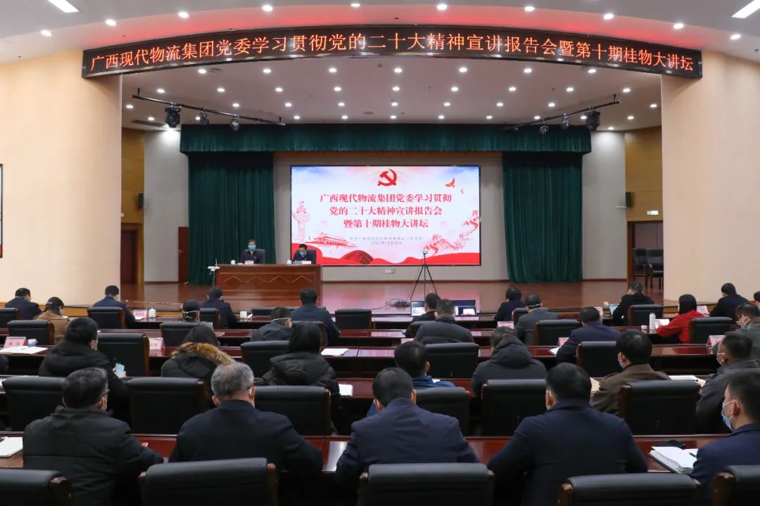 根据自治区党委、国资委党委统一部署,12月30日,集团公司党委召开学习贯彻党的二十大精神宣讲报告会暨第十期桂物大讲坛,党委书记、董事长覃黎魁作宣讲报告。集团公司党委副书记欧军主持报告会。集团公司领导陈