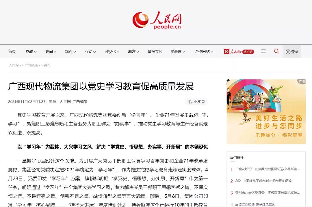 【人民网“广西‘一把手学党史办实事’云访谈”】 广西现代物流集团以党史...