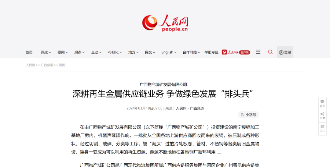 广西物产城矿发展有限公司:深耕再生金属供应链业务 争做绿色发展“排头兵...
